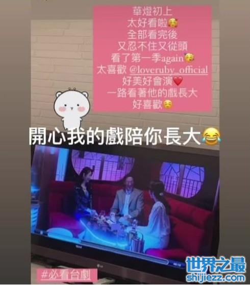 看来妈妈林心如内心是无比的自豪,镜头之中的电视正在放着自己在剧中的表现,从电视机画面来看,他们一家人正守在电视面前观看吧。