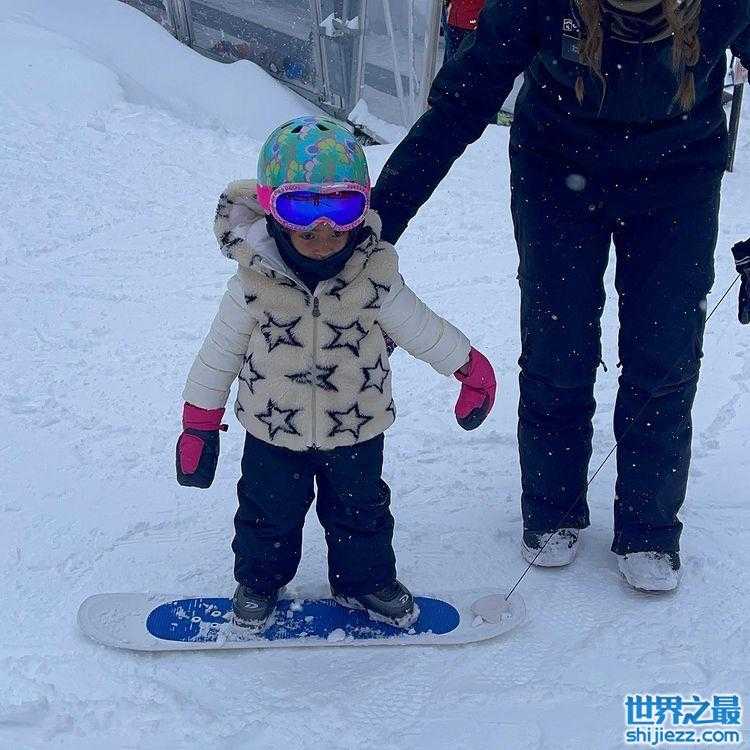 瓦妮莎带3个女儿滑雪,小女儿遗传科比的运动基因,在滑雪场撒欢 ...