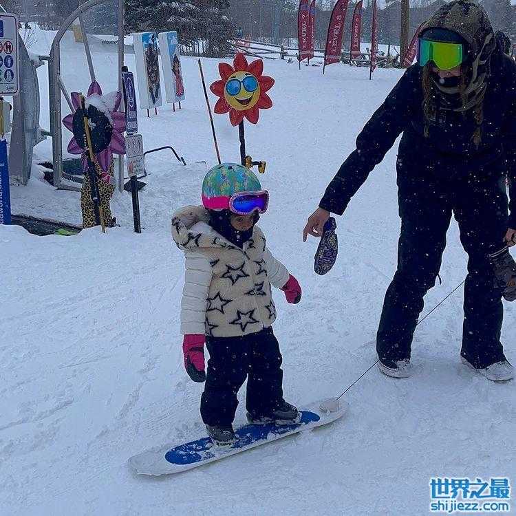 没有一会儿,瓦妮莎就带着二女儿开始玩起了滑雪,她的动作明显不是第一次玩滑雪,和妈妈在一起滑了起来,而且动作相当成熟。