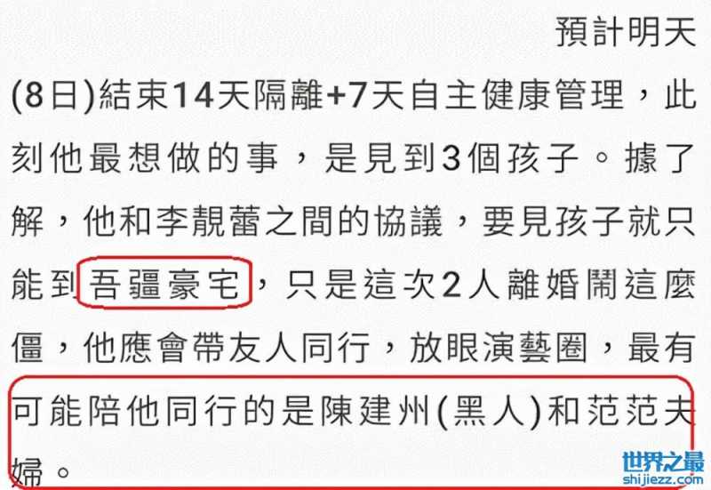 目前三个孩子是和李靓蕾住在吾疆的豪宅之中,据台媒称他和李靓蕾之间早在2019年就已经签定了分居协议,而且离婚协议也在签字确定之中。这一次2人公开互撕之后,他将带友人一起前往豪宅面见李靓蕾。