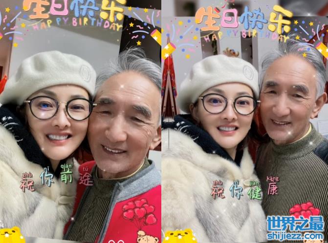 48岁牛莉为父亲庆生!两人贴脸互动感情好,父亲一头白发面色红润 ...