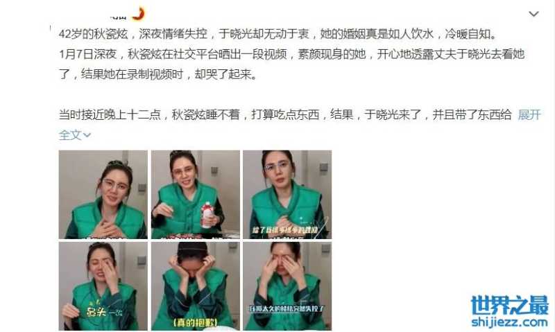 网友们看到了之后忍不住地安慰她,说真的,一个已婚女人,都已经42岁而且生活在独立自由的状态之下,哭出来不是没有原因的。是什么原因?说不清楚,当然秋瓷炫也懂事得不想给大家添麻烦。