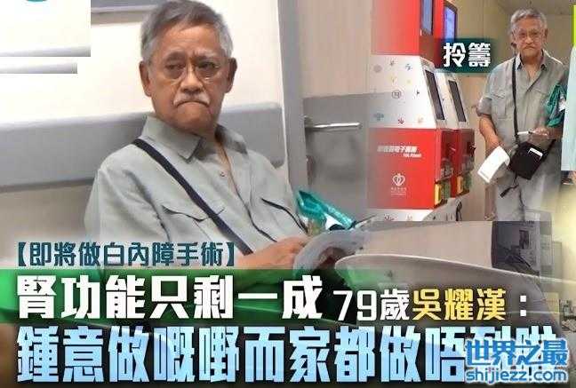 已经80岁的他这几年尤其老得太快,经常独自一个人到医院进行复查治疗。据透露吴耀汉的肾功能几乎坏掉了,只有一成的肾功能可以运转。