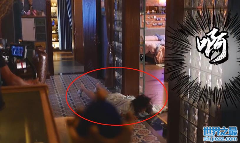 据悉,这是一场辛芷蕾在家休息时意外摔跤的戏份,所以她穿着淡绿色蕾丝睡衣。辛芷蕾直言这场戏不好演,如果考虑不受伤就会很假。于是她决定真摔而非做假动作,只见她拿着手机勾脚绊倒自己,整个人四仰八叉原地打了一圈滚险些走光。