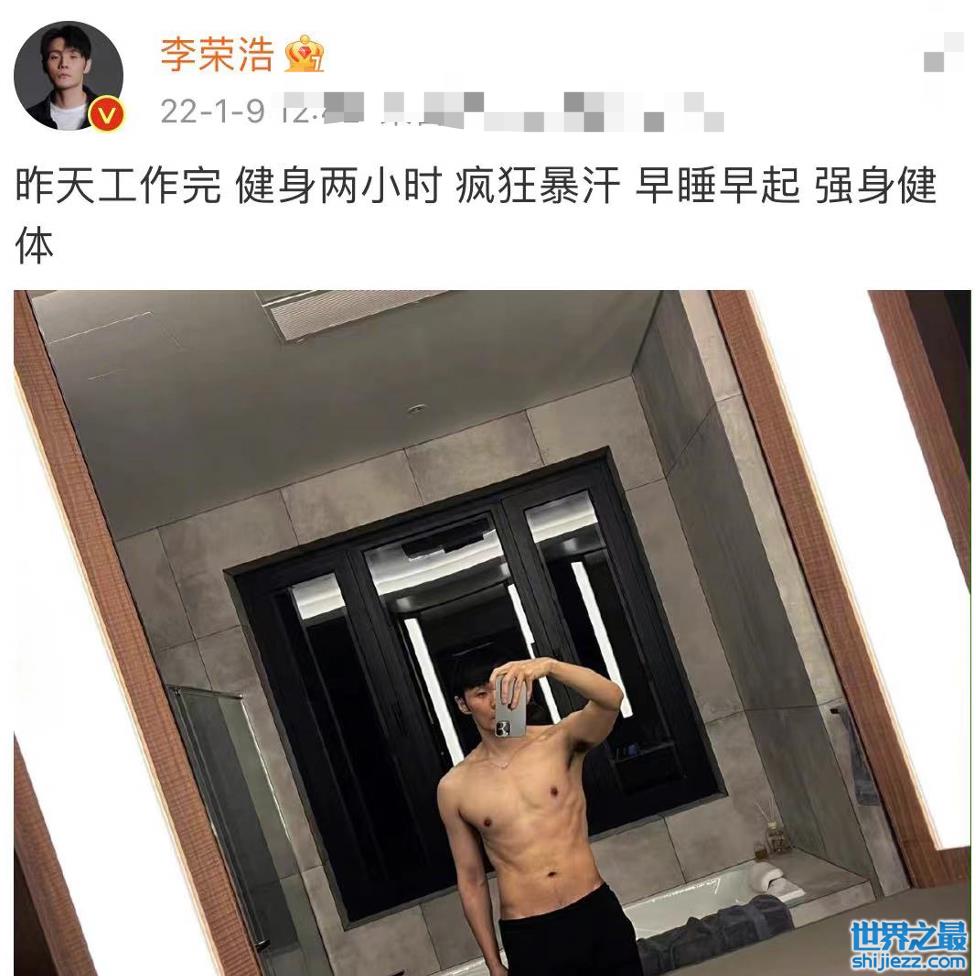 根据李荣浩分享出的照片,他赤裸着上身,穿着黑色的裤子抬手举着手机对镜反拍,身上的腹肌,鲨鱼线条极其明显,斜方肌也很突出,看得出来李荣浩在私底下没少进出健身房。但是由于抬起手,他的腋下毛发很是茂盛,乌黑的一片。