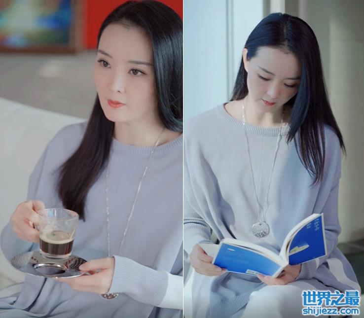 王艳还分享一段自己日常生活的视频。她穿一身浅蓝色的毛衣,搭配着一条巨大的项链,休闲范十足。王艳品尝咖啡,坐在落地窗前看书,她还是如此的优雅迷人。