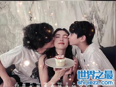 张柏芝两个儿子坐在左右两边亲吻她的侧脸,儿子的侧脸线条优越,张柏芝捧着蛋糕坐在中间,闭着眼睛一脸幸福的模样,有这么两个帅气的儿子真的是很幸福。