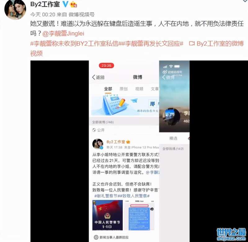 1月12日,by2工作室再一次放猛料,并且是跟着李靓蕾的最新发文之后再一次进行了反击。