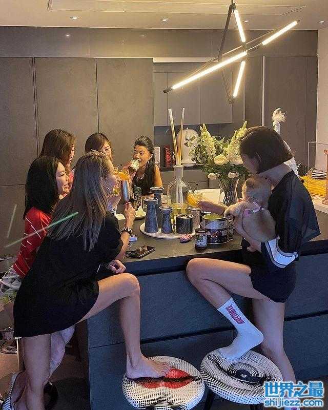 洗米嫂和友人一起在跨年夜庆祝,举着香槟一起迎接新年,生活状态十足的奢华。
