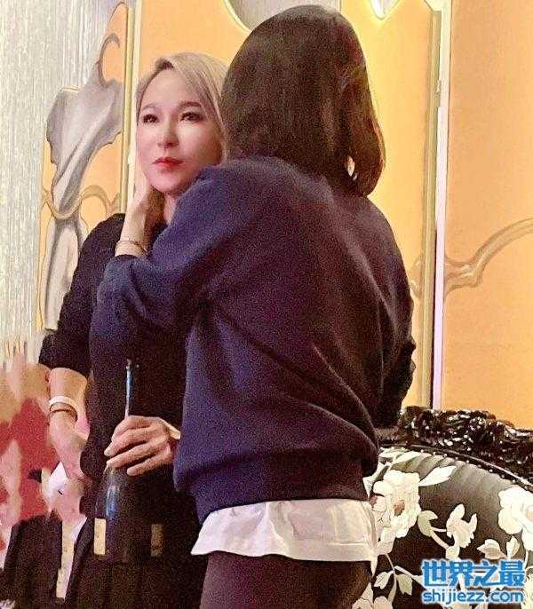 镜头中的洗米嫂当晚应该是喝了不少,被闺蜜搂着脖子聊天。而她在灯光的折射之下仍旧还是很漂亮,发型精致又迷人。
