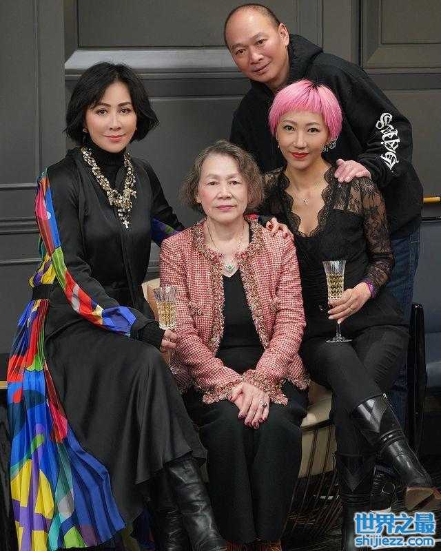 老公站在合影的后面,刘妈妈端坐在镜头之中。刘嘉玲则坐在另一旁,弟媳妇和刘嘉玲端着香槟,一家人很是幸福。