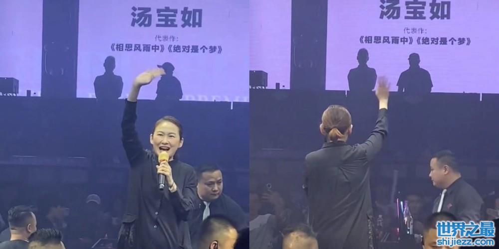 当汤宝如唱歌的时候,四周围着六七名保镖,甚至有几名保镖直接站在舞台上与汤宝如肩并肩,场面看起来有些混乱。