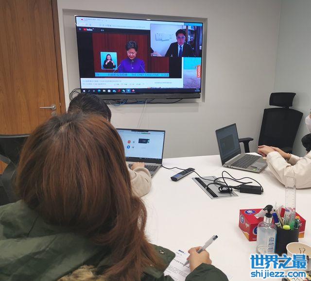 霍启刚发文:第一次大会会议,居家观看直播,同事们一同努力。