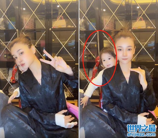 视频中,唐菀扎着简单利落丸子头,脸上化着精致的妆容,皮肤白皙细腻状态很棒。唐菀穿着一件深黑色印花长款衣服,看起来挺华贵有显气质。唐菀的女儿在她背后面玩耍,她看到妈妈面对着镜头时,表情多变搞怪,而且动作又有趣,女儿十分好奇着从她背后探出头来,女儿圆圆的小脸蛋超级可爱,五官像极爸爸曹云金。