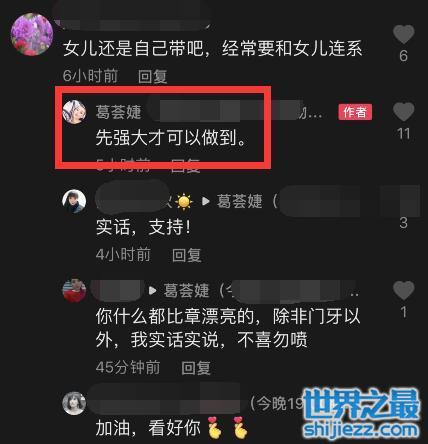 比如,有一位网友就说:“女儿还是自己带吧,经常要和女儿联系”,葛荟婕非常诚恳地回复说:“先强大才可以做到”,是啊,必须使自己强大起来,才能做到和女儿有更亲密的联系。