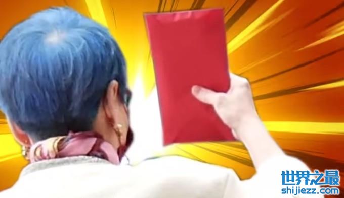 张嘉欣扶着90岁的婆婆慢慢下车,老太太手里还拿着亲友们送的大红包。另外张小燕下车之后就举起了一个超厚的大红包,然后示意给张正芬这一个“正宫娘娘”拿着。