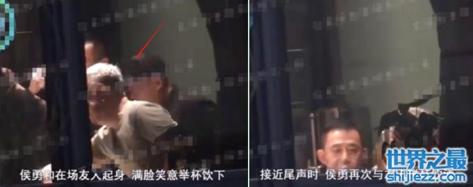 一群老友聚会心情自然高兴,随后众人叫服务员倒上红酒,大家齐齐起身带着满脸笑容的相互举杯对碰,场面十分热闹。在聚餐结束之际,侯勇又再次与友人举起红酒杯对酌,一口饮下表现豪迈。