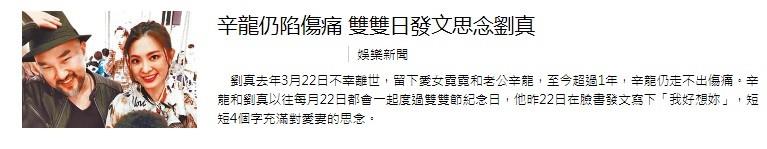 台媒是这样子形容的:辛龙仍陷伤痛,双双日发文思念刘真。