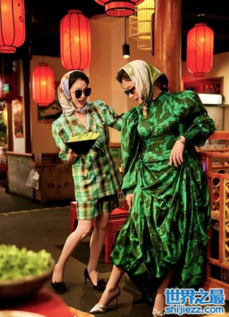 李玲玉与朋友将墨镜稍微的往下戴着,眼神十分霸气的往旁边看去。