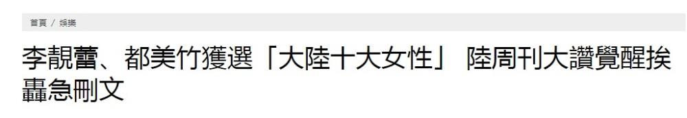 1月15日,某官方周刊公布了一篇文章,是关于对2021年十大女性面孔的评选。但这一次的评选之中,竟然出现了李靓蕾和都美竹这两个半个娱乐圈时面的女人。