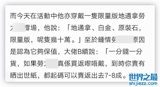 而且他还透露自己名下有几十块这样的名表,基本上什么牌子的都有买过,其中最贵的一只限量表价格高达144万港币。而他这几十块名表加起来早已超千万,果然戴名表是有钱大佬的象征之一。