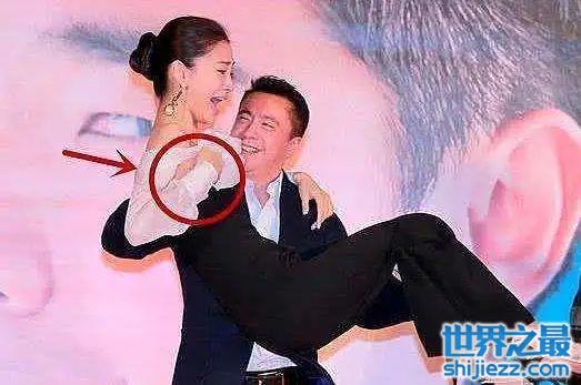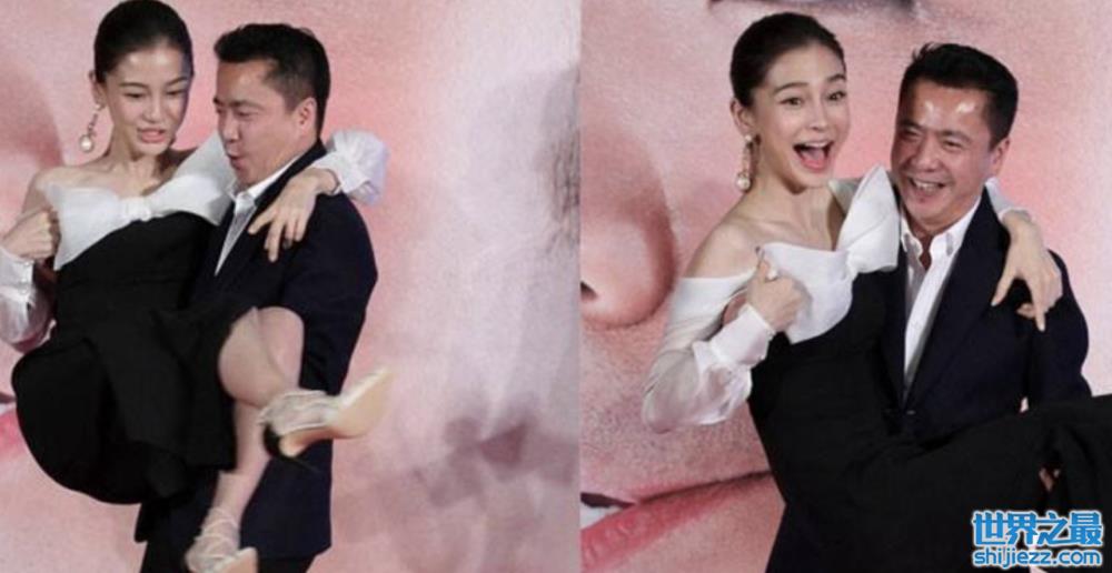 此前,baby和华谊老总王中磊同台时,王中磊二话不说,突然给了baby一个公主抱,害得baby险些走光,只能立马捂住胸口。