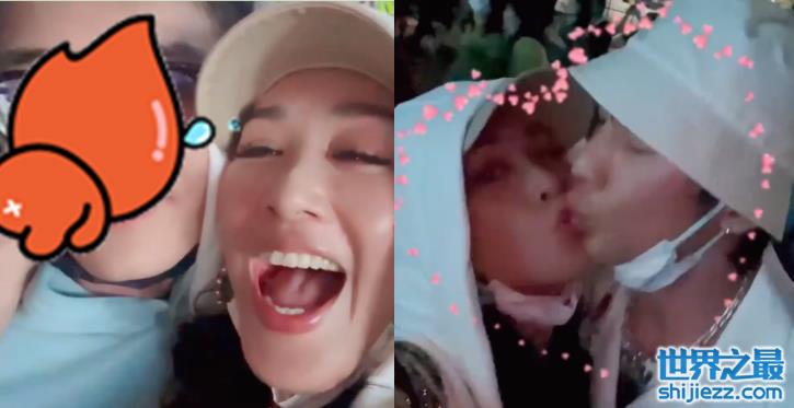 钟丽缇与周围好友沉浸在跨年的欢乐中,兴奋地拉着同行的友人们贴脸亲昵十分热情。最后她和张伦硕在人群中大方亲吻秀恩爱,弄得周围人害羞低下头。