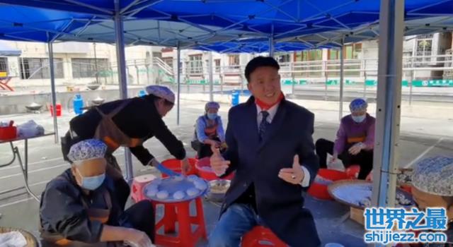 为了更好地融入阿姨们的工作,万梓良拿着一根木棍在钢盆里卖力搅拌。万梓良身边的阿姨都穿着围裙戴着帽子,手套口罩也不落下,装备相当齐全。而身穿西装的万梓良虽然在帮忙,倒还是显得有些格格不入。