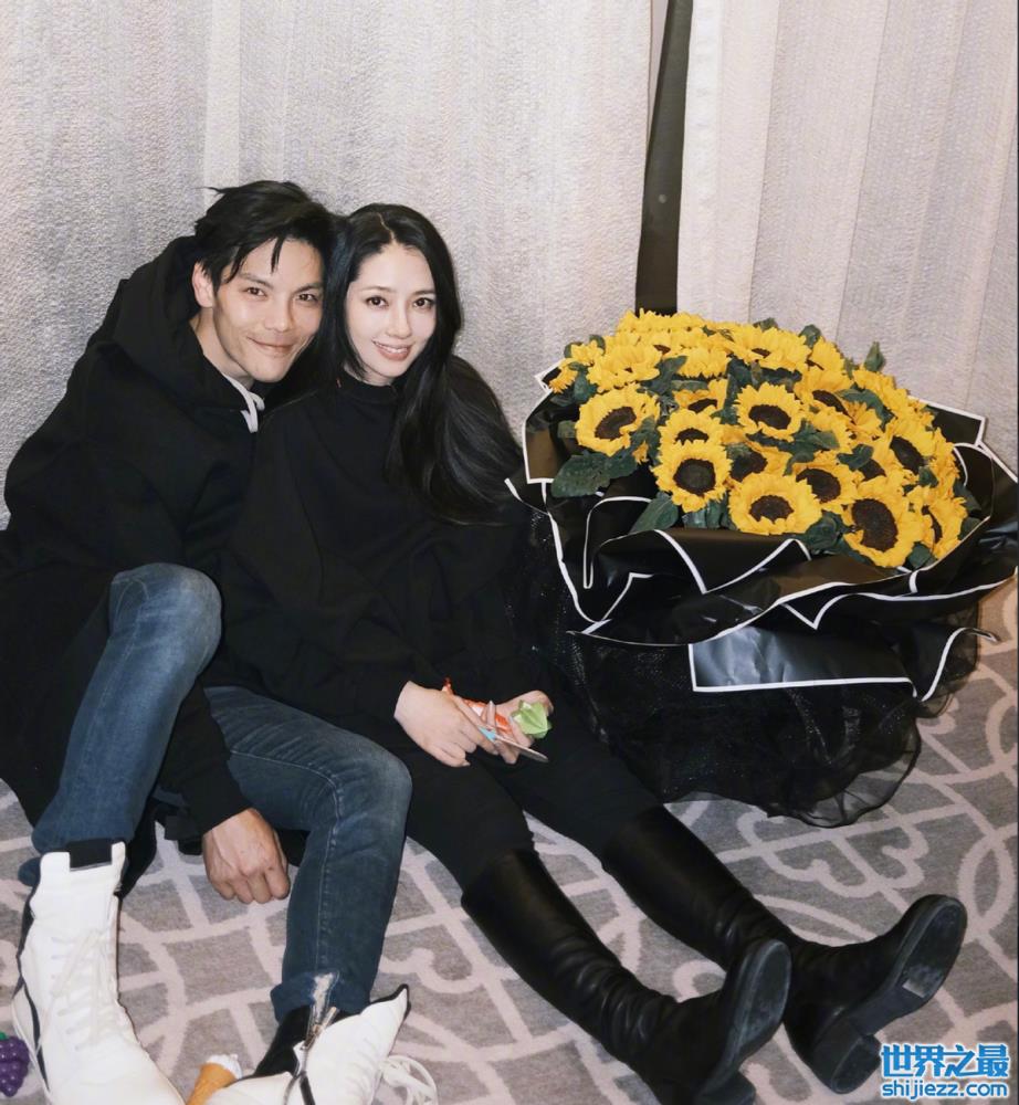 照片中,向佐与郭碧婷都穿着朴素黑色的衣服,郭碧婷并没有带很浓的妆容,但是依旧皮肤白皙状态满分,两人亲密的靠在一起坐在地毯上,向佐紧紧搂住郭碧婷,旁边赫然一个几乎有半个人大的巨型向日葵花束。