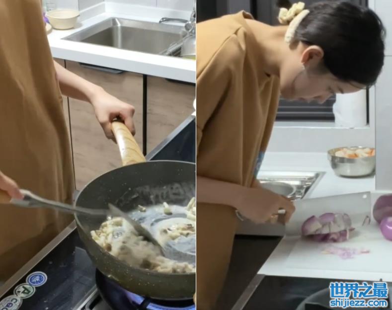 欧阳娜娜买菜做饭招待客人!炒菜仅放一点油,锅底焦黑一片太真实 ...
