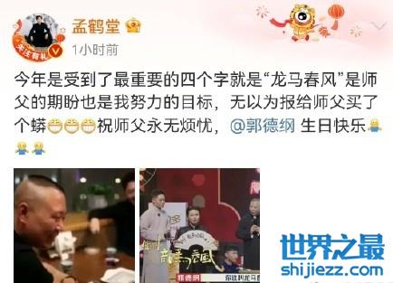 孟鹤堂:今年是受到了最重要的四个字就是“龙马春风”是师父的期盼也是我努力的目标,无以为报给师父买了个蟒。祝师父永无烦忧, 生日快乐!。张鹤伦:祝师父生日快乐!身体健康!