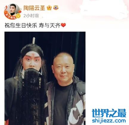 张云雷:我滴爱豆 生日快乐!陶阳:祝您生日快乐,寿与天齐。杨九郎:愿您岁岁平安,爱您,生日快乐师父!每年郭德纲在这个时候都会收到徒弟个的祝福,每一年都几乎一样,但每一年都一句也不缺。