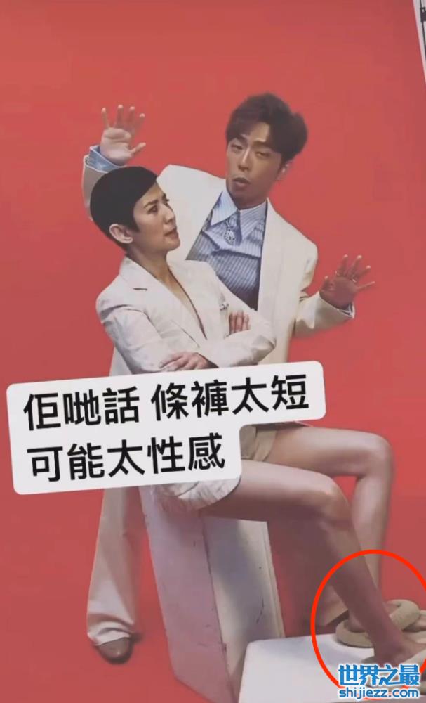 就在前段时间,吴君如与男演员拍海报照片的时候,吴君如穿着整套西装,深V领外套内似乎并没有穿衣服,下身穿着一条超短的内裤,美腿直接裸露出来。令人搞笑的是吴君如脚踩着一个毛绒的人字拖,看起来喜感十足。就连她自己都吐槽“短裤太短,可能太性感。”