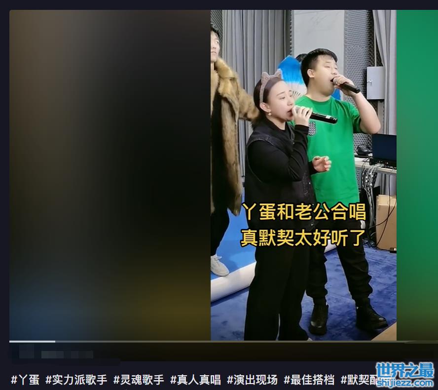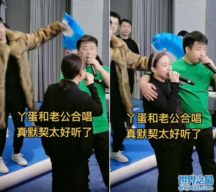 丫蛋一脸认真地演唱,有时还会转身与老公对视,俩人合唱时不停地有一下小互动,氛围十分甜蜜。视频末尾,丫蛋老公唱得一脸十分开心,笑着将丫蛋搂进怀里,俩人笑着唱歌。