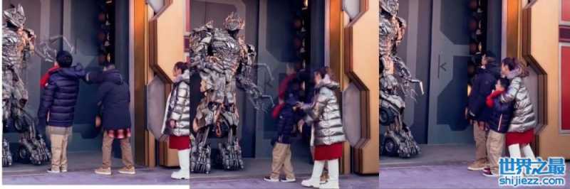 转眼间,三人来到一处扮演变形金钢的工作人员面前,只见8岁的Jasper身高直逼陈小春的肩膀。由于工作人员的服装看起来有些危险,陈小春用手拉了拉jasper帽子,但是jasper无动于衷,应采儿看到之后上前一把拉住jasper的帽子并将他抱入怀中。