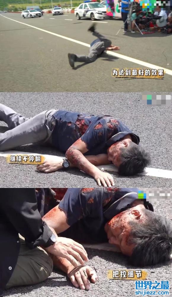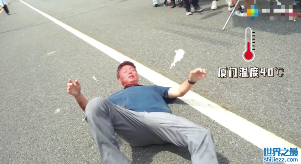 在视频中,化妆师给刘奕君再次补妆,只见刘奕君紧闭双眼,右脸一侧化着特效妆,全是被爆炸后皮肤被火焰灼烧后伤痕,看上去十分吓人,,由于室外高温刘奕君出了许多汗,化妆师都说“滋水,对里边憋的汗”,躺在马路上的他身上的汗水和胶水都混到一起