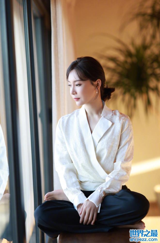 根据陈数分享出来的照片看,陈数穿着一件素色不对称领子的白上衣搭配宽松的黑色裤子,她将头发扎成低马尾尽显端庄典雅,只见她皮肤白嫩似少女,眼睛盯着窗外,眼里带着淡然,但是嘴角泛起微笑。