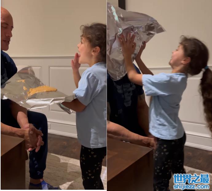 巨石强森罕晒父女同框!被恶搞糊一脸花生酱,女儿甜美可爱不像爸 ...