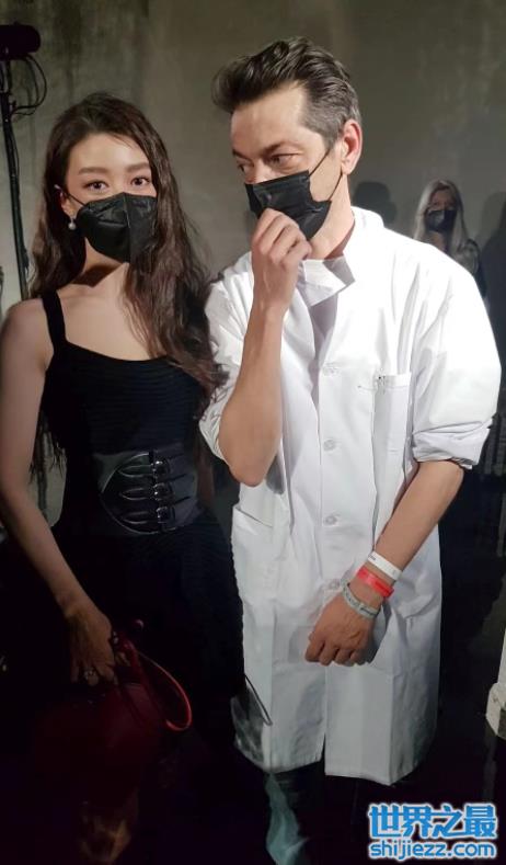 另一张是吉娜与旁边帅气的设计师合影,她站在一旁十分严肃,手中还拿起一个包。她旁边的设计师很是认真的盯着吉娜看,样子也是很搞笑了。值得注意的是,吉娜的腰超级细。