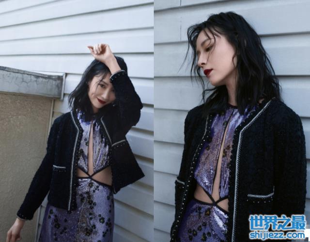除此之外,她还换了一套亮片紫调复古裙,内搭的裙子肚子部分是呈现三棱角的镂空设计,将董洁的苗条身材完美地凸显出来。董洁尽情摆动着拍照的专业姿势,脸上带着微笑,嘴角的酒窝显得甜美又媚人。