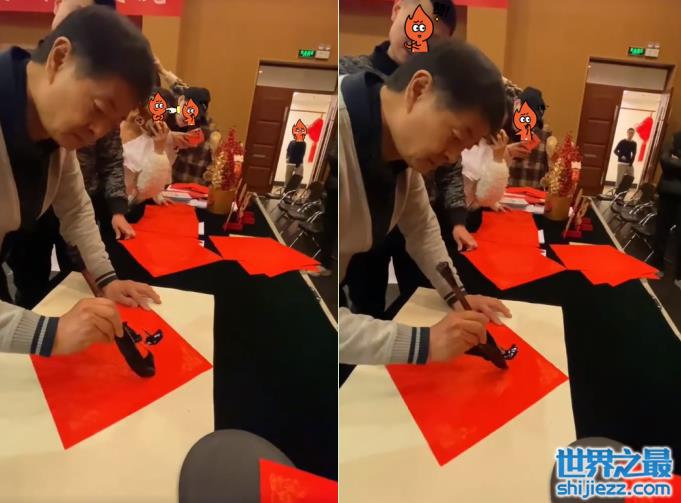 或许是为迎接新年新气象,濮存昕当天还为现场的众多工作人员亲自题笔写福。只见他弯腰手持毛笔,大笔一挥一个“福”字便跃然纸上,书法苍劲有力字体十分磅礴大气,可见其书法功底深厚,而大家更是纷纷举起手机拍摄。
