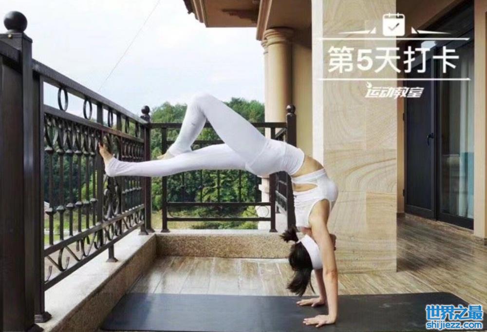 34岁王子文头顶地板倒立练瑜伽!双腿绷紧悬空中,穿紧身衣秀曲线 ...