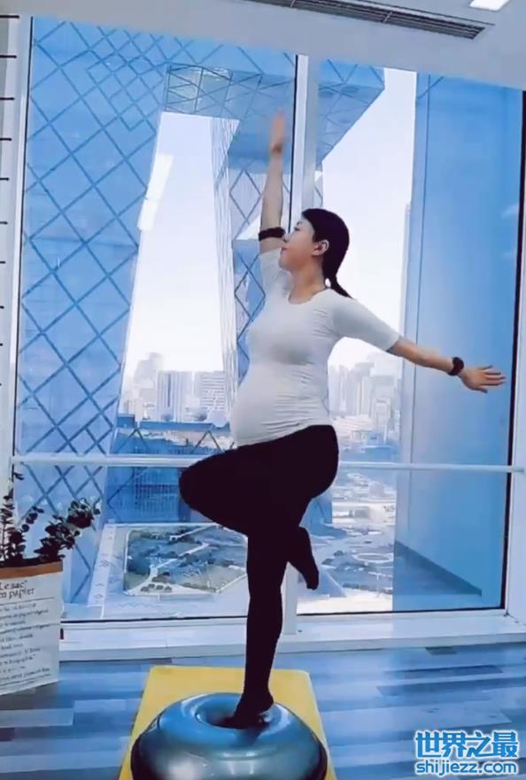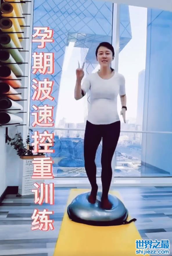 43岁颜丹晨怀孕8个月健身!平衡球上单脚站立,身后央视大楼抢镜 ...