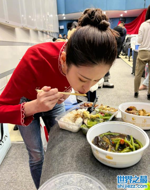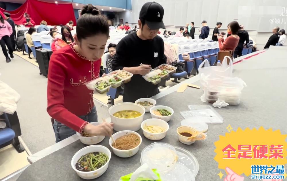 颖儿公开春晚后台工作餐!塑料饭盒比脸还大,没有餐桌只能端着吃 ...