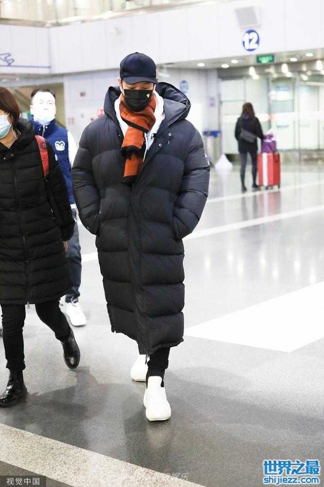 镜头中的他穿着一双白色的时尚鞋子,然后配合着一件超大的羽绒服,不知道是不是他刚从春晚彩排的节目中结束出来。