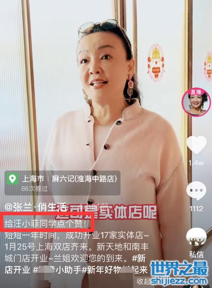 1月23日,张兰在个人社交平台晒出一段视频,狂赞儿子汪小菲:“给汪小菲同学点个赞!短短一年时间,成功开业17家实体店~”