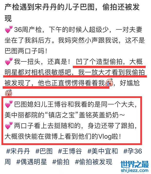 1月22日,有网友在社交平台晒出偶遇宋丹丹儿子巴图,带着媳妇博谷产检的照片,说:“大概明星对相机都非常敏感,放大看到巴图发现自己被偷拍了”。