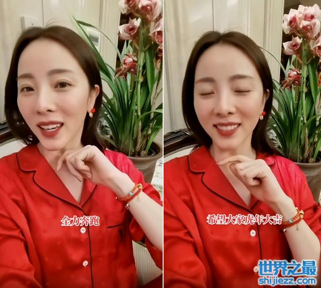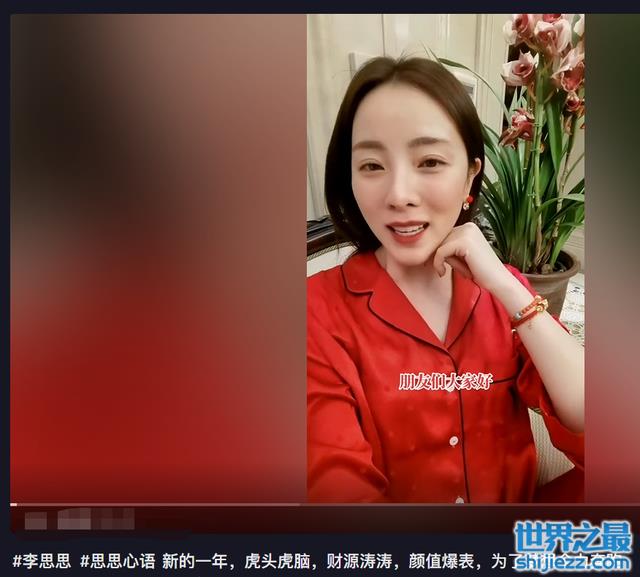 李思思豪宅内给观众拜年!穿大红色睡衣好喜庆,素颜出镜皮肤白嫩 ...