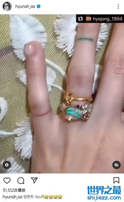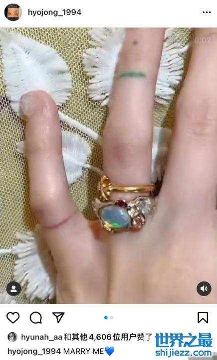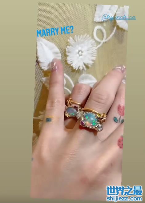 金晓钟成功求婚泫雅!晒硕大宝石戒指,手指上玫瑰纹身太吸睛 ...