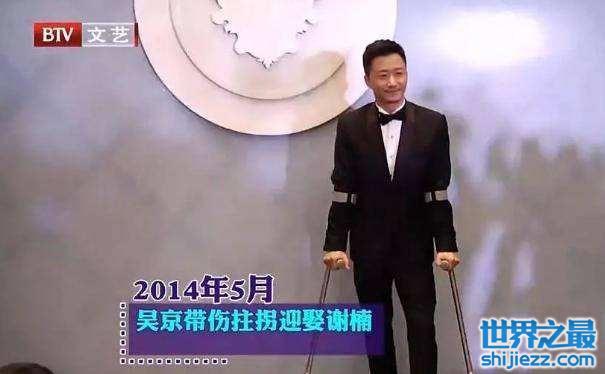 从业多年,吴京受过大大小小的伤痛无数,曾在拍戏时打断肋骨,就连与妻子谢楠结婚时,他都是腿上打着石膏,拄着拐杖参加的,不得不说他对待拍戏有着拼命三郎的精神,值得许多演员们学习。